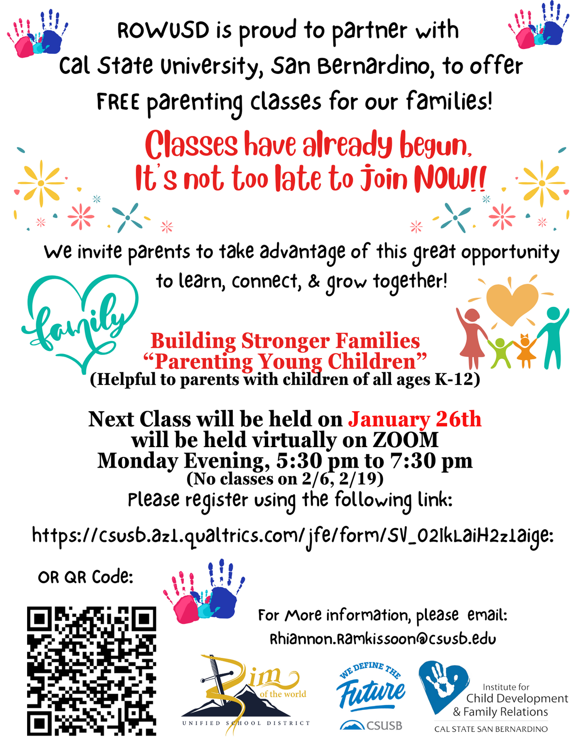 Page: ROWUSD is proud to partner with Cal State University, San Bernardino, to offer FREE parenting classes for our families! Classes have already begun,