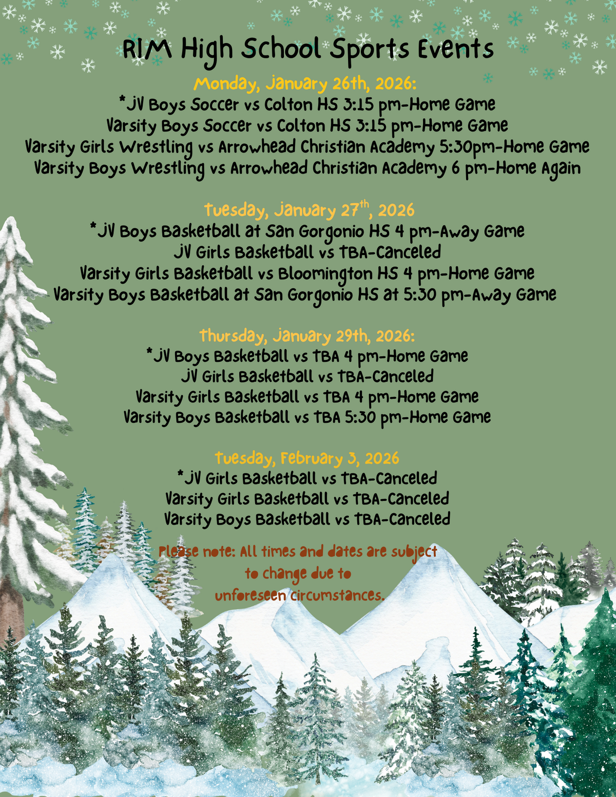 Page: RIM High School Sports Events. Monday, January 26th, 2026: